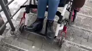 Спускаюсь по лестнице на инвалидной коляске♿️