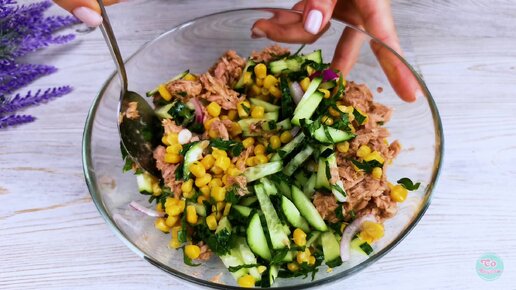 Салат с тунцом и кукурузой за 5 минут. Делюсь рецептом.
