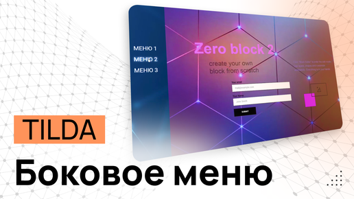 Боковое меню в ZERO-блоке на Tilda. Многослойный сайт с анимацией и меню по наведению или клику мыши