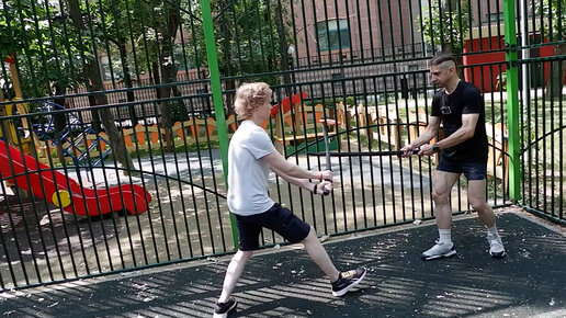 Далее: Урок фехтования катаной. Кендзюцу. Спарринг на коротких мечах летом на улице
