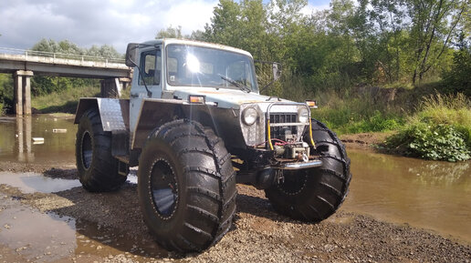 Самодельный дизельный вездеход, на мостах Газ 66 и колесах ободрышах Ураган, на бедлоках.