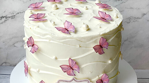 Собираю высокий торт из двух низких, делаю современный декор. Посмотрите, что у меня получилось 🙂