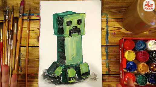 Рисуем КРИПЕРА из Майнкрафта - урок рисования красками