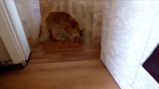 Рыжему коту Барсику для игр нужна ватная палочка