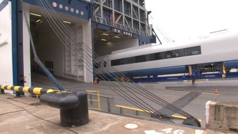 Как «Сапсаны» приплывают в Россию. Скоростной поезд разгружают с корабля