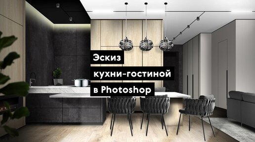 Эскиз кухни-гостиной в Photoshop