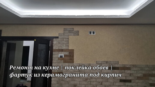 Ремонт на кухне | поклейка обоев | фартук из керамогранита под кирпич