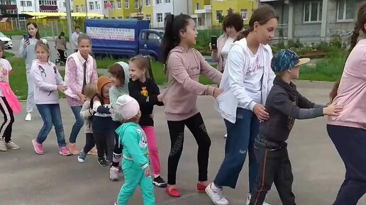 На детском празднике во дворе. В двойне всегда один пляшет, а второй - в стороне