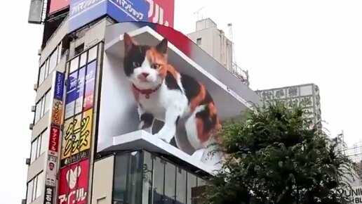 Билборд с огромным мяукающим 3D-котом