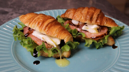 Романтический завтрак для любимой. Круассан с сёмгой и яйцом пашот