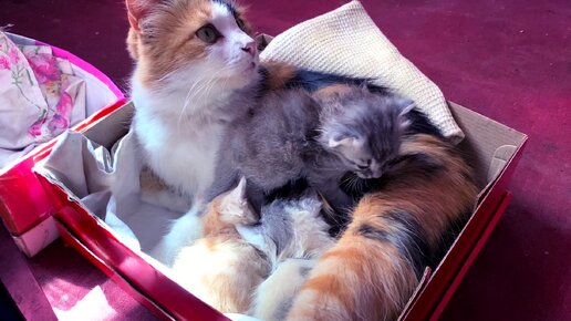 Деревенские котята. Милота зашкаливает. Серия 1. Сколько родилось котят и какого окраса.