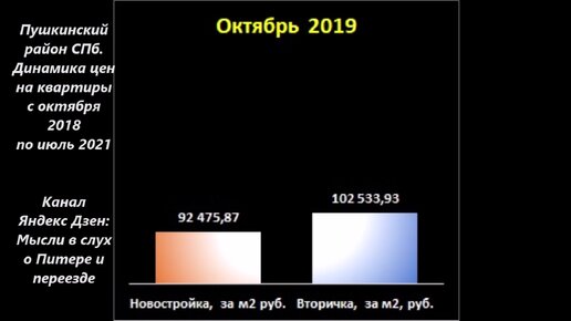 Пушкинский район СПб. Динамика цен на квартиры с октября 2018 по июль 2021