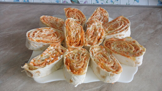 Рулет из лаваша с корейской морковкой. Идеальная закуска!