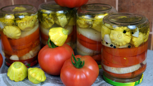 Салат из Помидоров, лука и патиссонов на зиму.