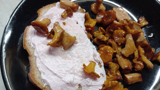 Жареные лисички в качестве гарнира к бутерброду с сыром с морепродуктами. Решил приготовить. Показываю что получилось