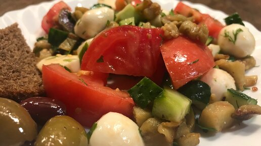 Летний овощной салат с донскими синенькими и итальянским сыром моцарелла. Получилось легко, вкусно и полезно