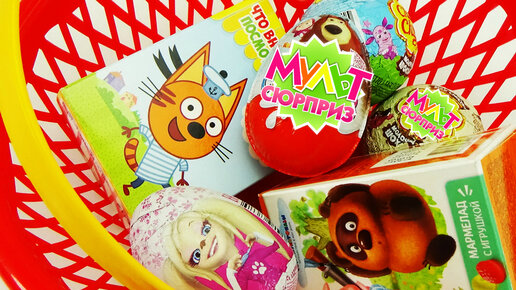 Новые Сюрпризы с игрушками героями мультфильмов Три кота, Маша и медведь, Барбоскины