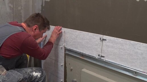 Укладка плитки на стены. Ванная комната.