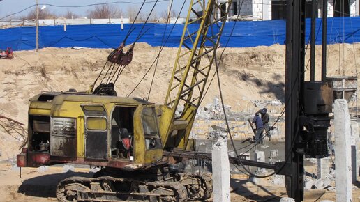 Экскаватор родом из СССР работает на забивке свай. Часть первая