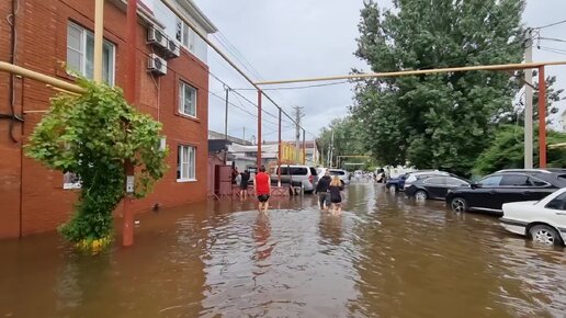 #Анапа Потоп в #Джемете на ул. Песчаная люди на лодках...