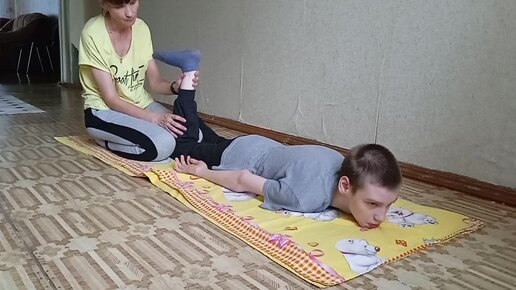 Наши домашние занятия. Дима не умел до отъезда стоять прямо на коленях