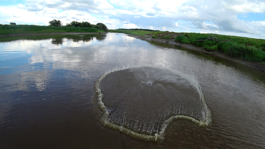 Огромные сазаны на кастинговую сеть, в маленькой речушке.