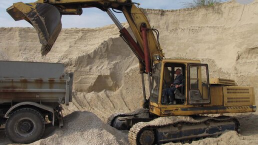 Воронежский экскаватор ЭО-5225 с прямой лопатой работает в карьере