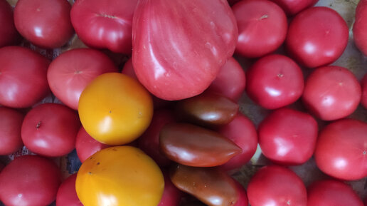 Обзор теплицы 12 августа и сбор урожая разноцветных томатов.