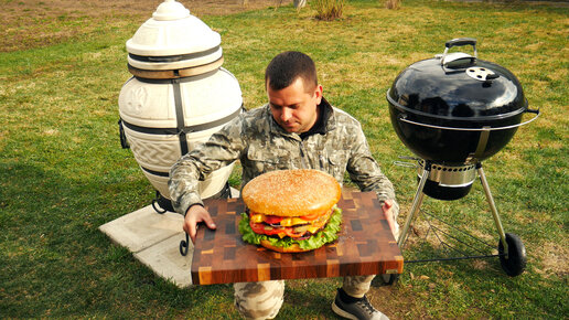 ОГРОМНЫЙ БУРГЕР МЯСО НА ГРИЛЕ БУЛКА В ТАНДЫРЕ