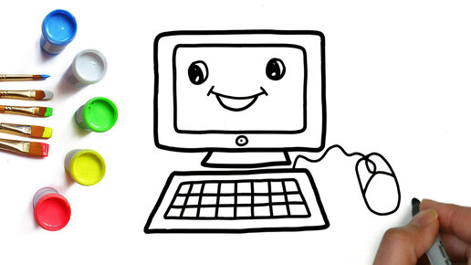 Как нарисовать компьютер, рисунки и раскраски для детей и малышей