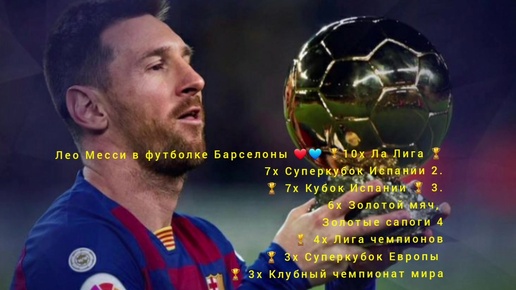 Лео Месси в футболке Барселоны ❤💙 🏆10x Ла Лига 🏆 7x Суперкубок Испании 🏆 7x Кубок Испании 🏆 6x Золотой мяч, З