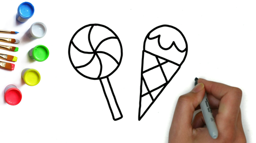Как нарисовать сладкую конфету леденец на палочке и мороженое, лёгкие рисунки и раскраски для детей