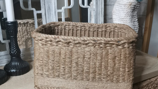Плетеный органайзер из картонной коробки и веревки.