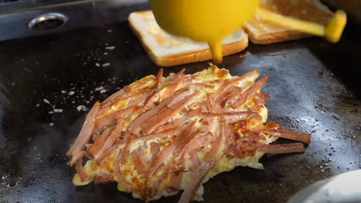 Невероятная Корейская уличная еда - рисовая чашка и тосты с ветчиной