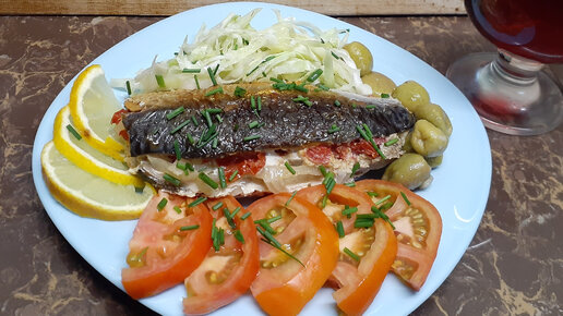 Ужин за 30 минут. Запекаем скумбрию в фольге с луком и помидорами.