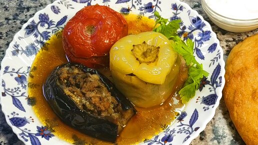 Фаршированные овощи по-азербайджански 🌟 Ən ləzzətli badimcan, bibər, pomidor dolmasi ÜÇ BACI DOLMASI