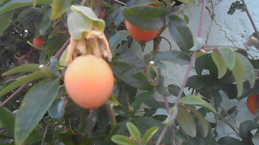 Показываю какие плоды созрели на месте необычных цветов пассифлоры или маракуйи в Симеизе