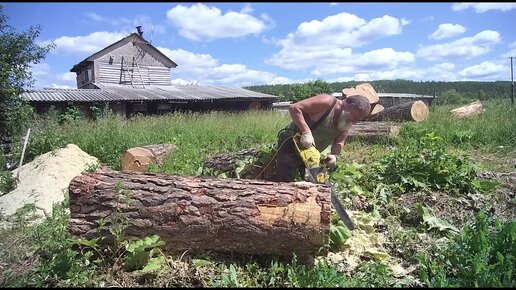 Огромное сосновое бревно пилю вдоль, своими руками, электропилой ЧЕМПИОН...