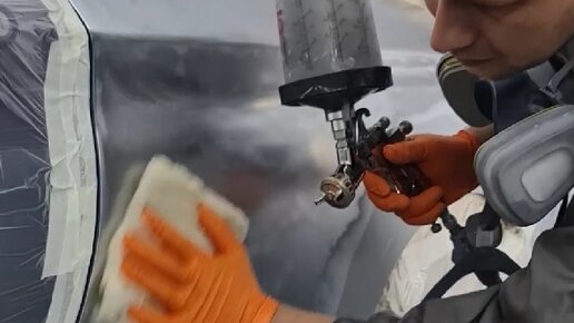 Малярные работы с БМВ, грунтуем в покрасочной камере
