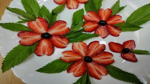 Цветы из Клубники и Мяты для украшения тортов, желе, десертов, мороженого. Быстро, Просто и Красиво