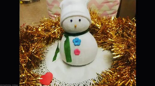 Новогодняя поделка "Снеговик из риса и носочка"