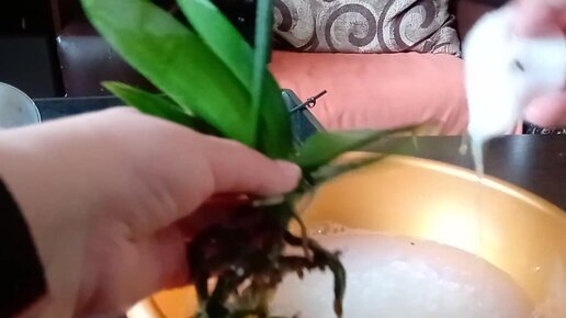 Пересаживаю орхидею в гостях, обрабатываю домашними средствами от паразитов.