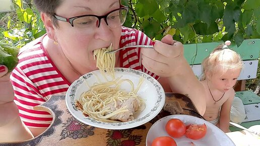 Дали свет , быстрее жрать/Вермишель с курицей, после бутерброда это очень вкусно/И Викуля моя кушает,главное чтоб не спать🙉