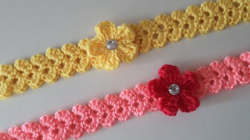 Повязка на голову ребенку крючком. Вязание ЛЕНТОЧНОГО КРУЖЕВА. Вязание крючком / Crochet lace ribbon