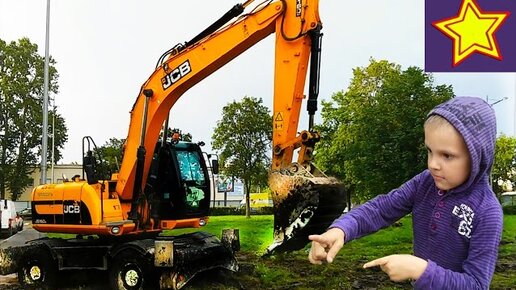 Экскаватор в работе. Экскаватор ровняет землю. Видео для детей Video about excavator