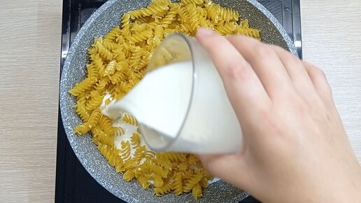 Больше макароны отдельно не варю. Просто заливаю их молоком и готовлю быстрый завтрак на сковороде