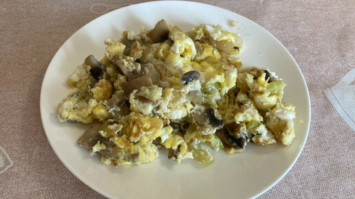 Простой завтрак, который новичок справится. Шампиньоны с яйцами