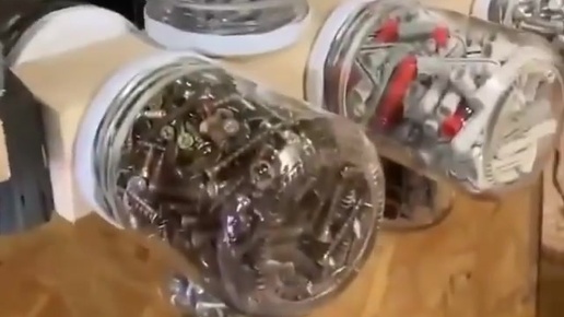 Придумал способ хранения шурупов и гвоздей в мастерской с помощью баночек