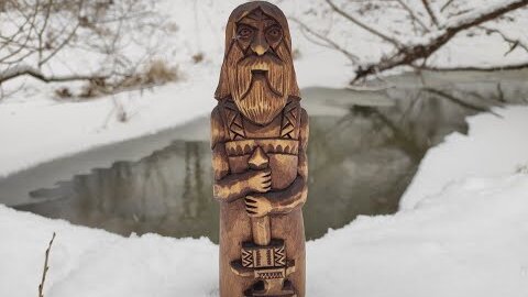 Этапы резьбы Сварога из дерева. Небольшой кумир, тотем, идол