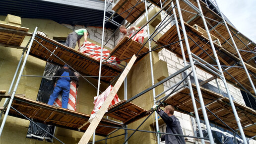 Приклейка минераловатной плиты толщиной 250мм на фасад газобетонного дома 200мм